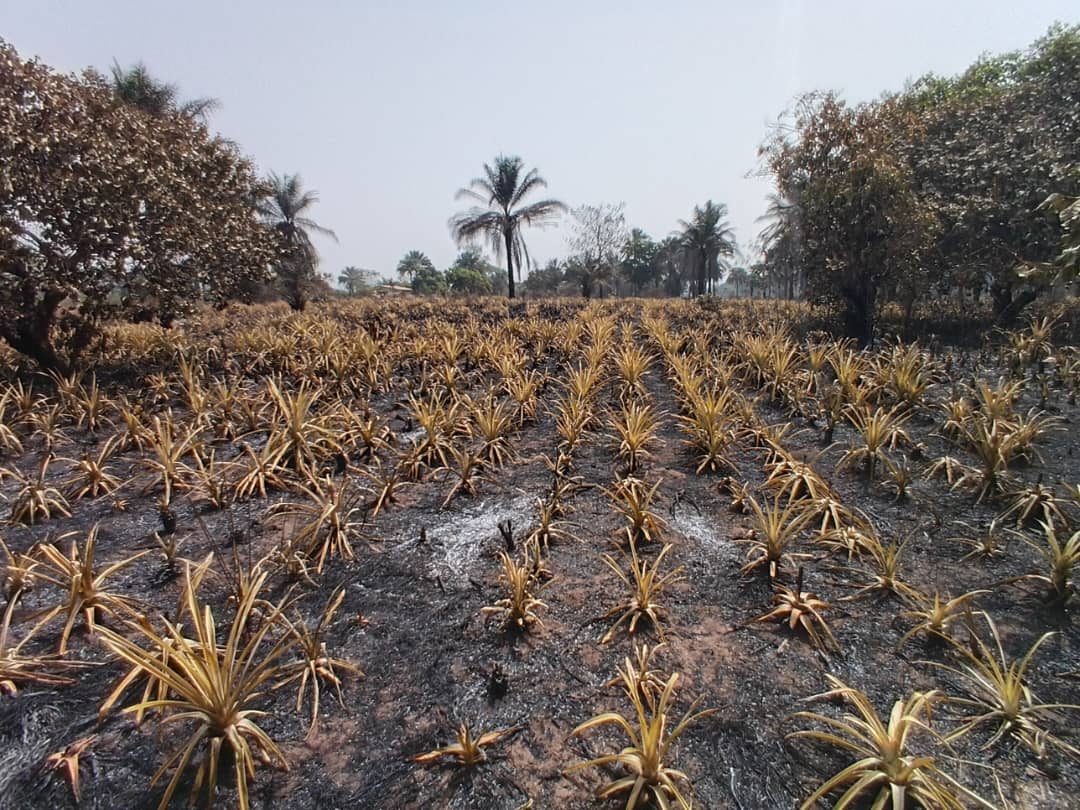Des hectares d’ananas réduits en cendres à Kindia: « Tout mon espoir est parti en fumée »